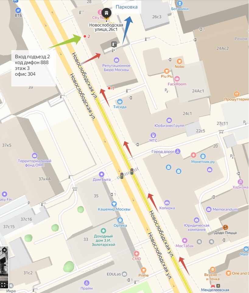 Москва, м. Менделеевская (1 минута пешком) ул. Новослободская, д. 26 стр.1